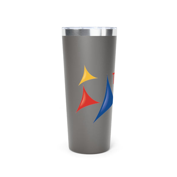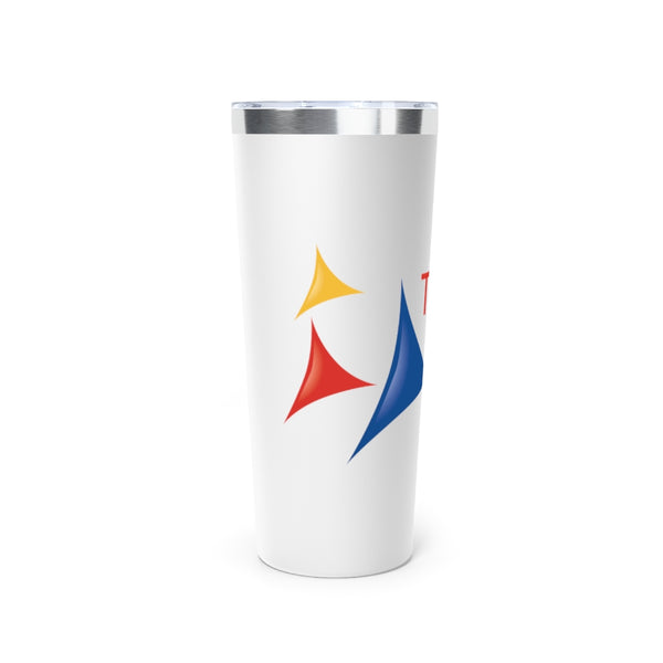 Stay hydrated in style on a daily basis with this personalized tumbler. With a 22oz capacity and copper vacuum insulation, our tumbler keeps your favorite beverages refreshingly cold for 24 hours, and soothingly hot for up to 6. Its stainless steel exterior is condensation-resistant while the powder coating adds extra style points. With push-on lid, includes Eastman Tritan™ straw.